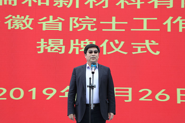 马鞍山市和县副县长、安徽省精细化工基地党工委书记王翰举主持揭牌仪式。安徽省科技厅引进国外智力与科技人才管理处副处长刘涛宣读院士工作站批复文件。