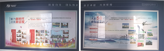 企业文化橱窗 (企业文化橱窗用于展示公司文化活动动态,现在展示的是公司近期开展的“聚力新时代、点亮新征程”和“大战五十天、确保试生产”主题活动。)