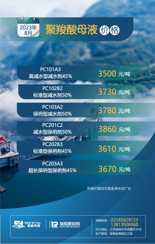 【聚羧酸系减水剂母液月度最新价格】丨2023年8月